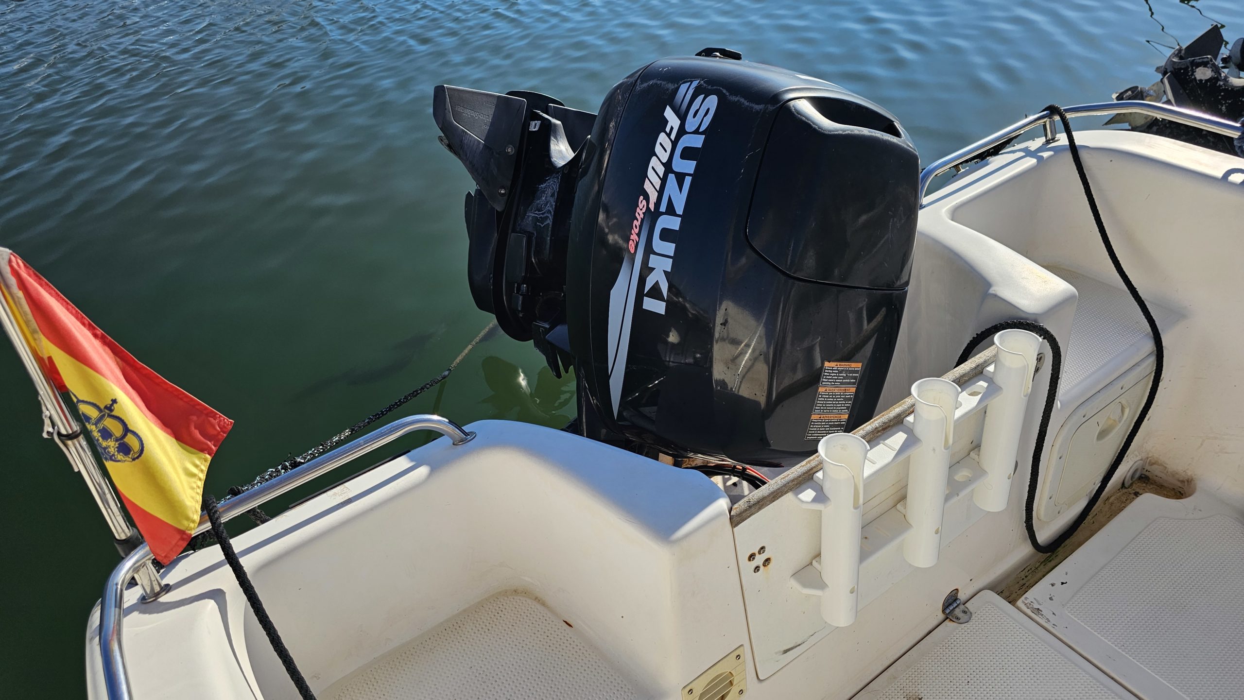 Esta unidad monta un motor Suzuki 50 HP de 4 tiempos con inyección electrónica, reconocido por su fiabilidad, bajo consumo y suavidad de funcionamiento, una combinación perfecta para este casco. El conjunto se encuentra en uso, con mantenimientos al día y listo para navegar.