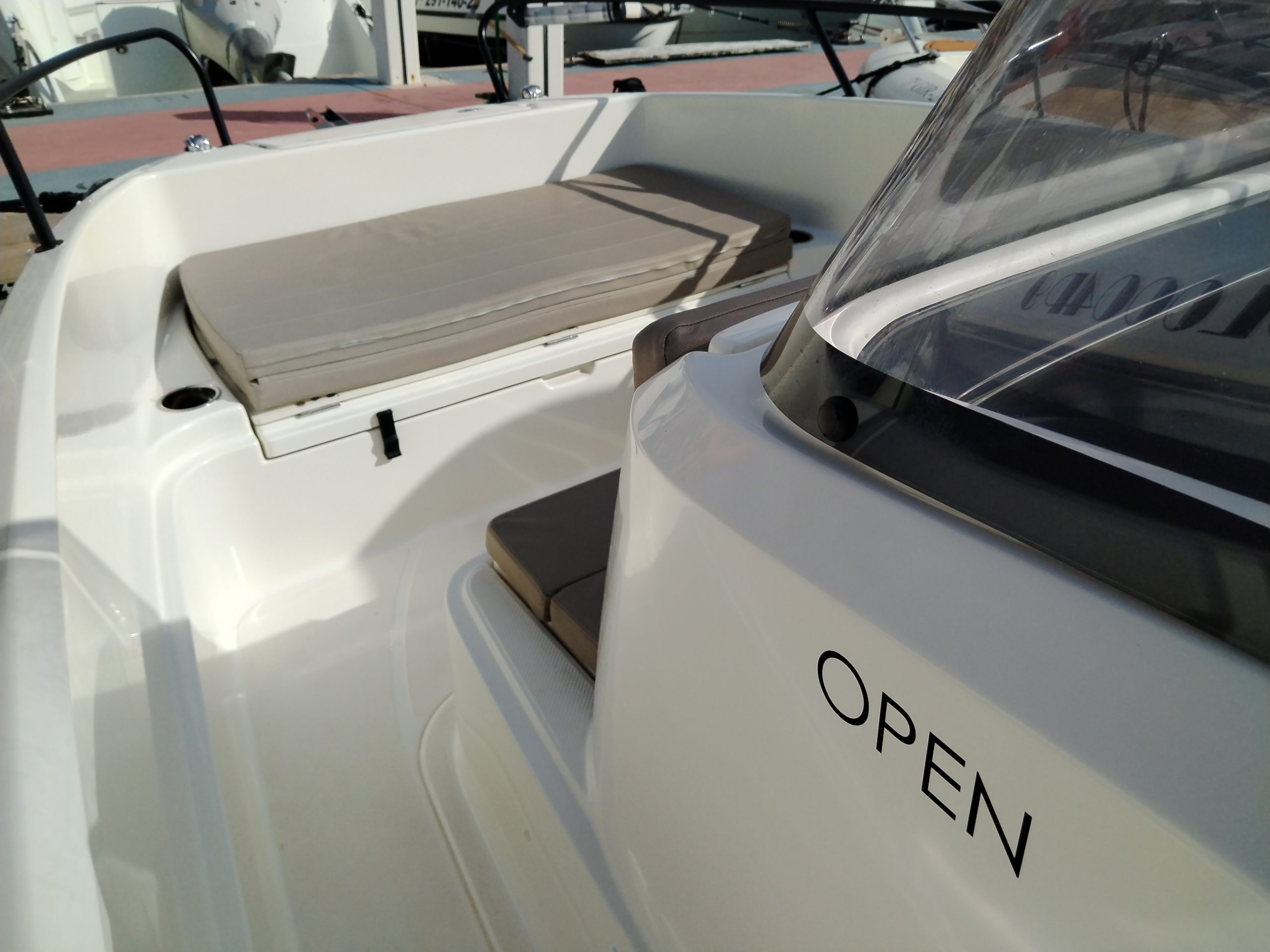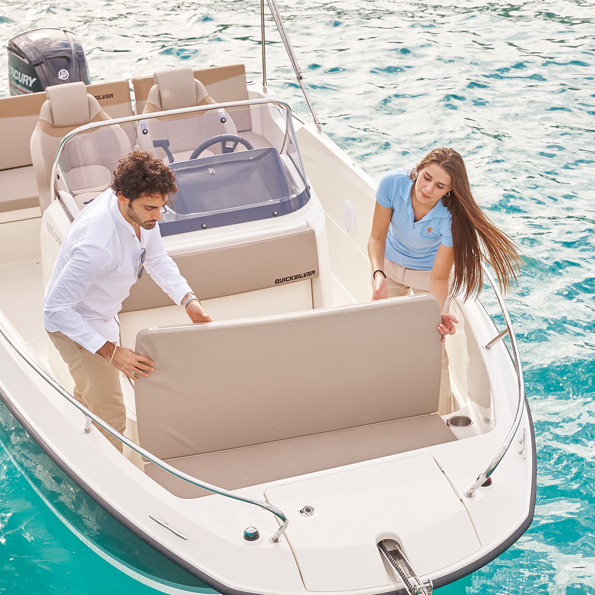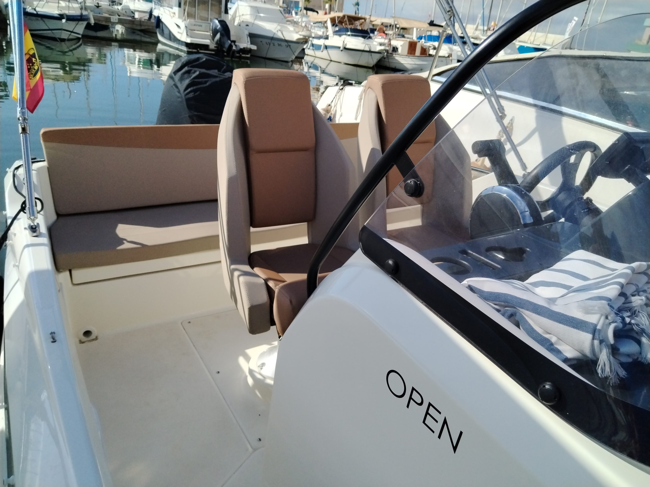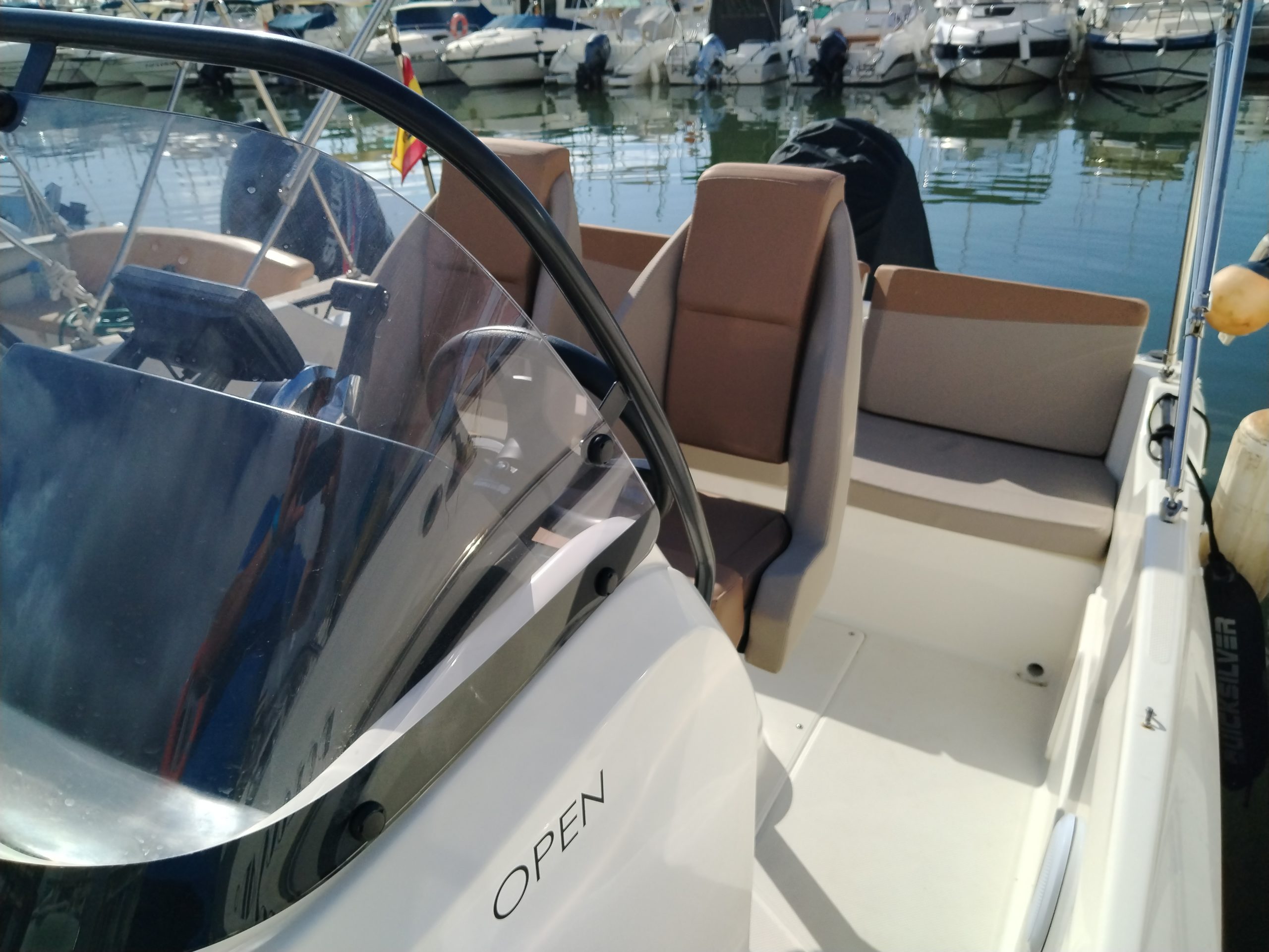 La Quicksilver Activ 605 Open destaca por su magnífica relación entre tamaño, seguridad y comodidad. Aunque su casco mide menos de 5,75, dispone de una eslora total de 6,46 m, lo que la convierte en una opción perfecta para quienes desean un barco amplio y estable, pero que pueda navegarse únicamente con Licencia de Navegación en España. Este detalle supone una gran ventaja para nuevos navegantes o usuarios que buscan la máxima funcionalidad con la mínima exigencia de titulación.