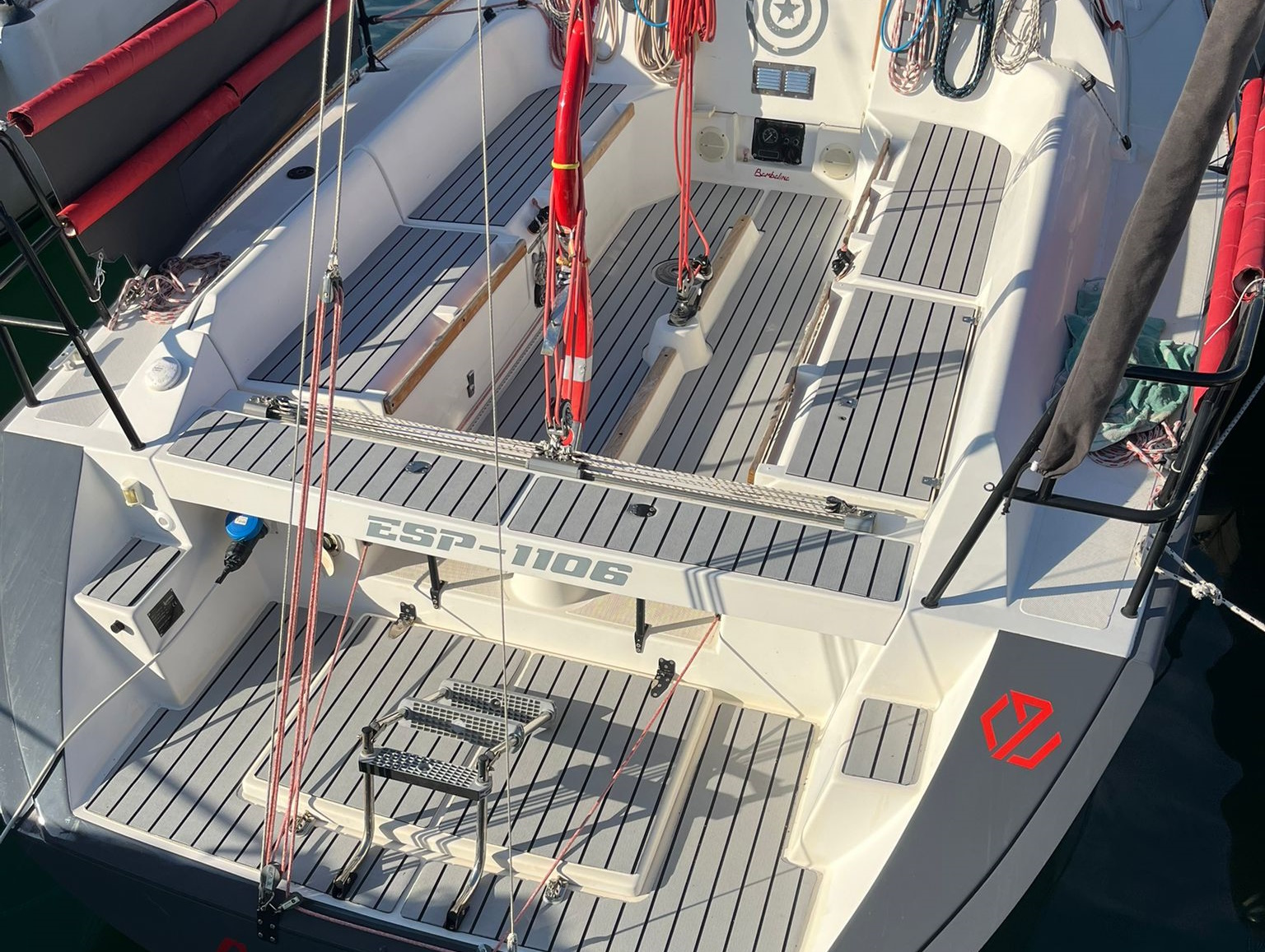Velero de ocasión Astraea Helium 980 del año 2001, en perfecto estado de mantenimiento y equipamiento, listo para navegar y con un refit completo realizado en 2021. Se trata de una embarcación de 9,80 metros de eslora, con un diseño equilibrado entre confort, seguridad y altas prestaciones de navegación.